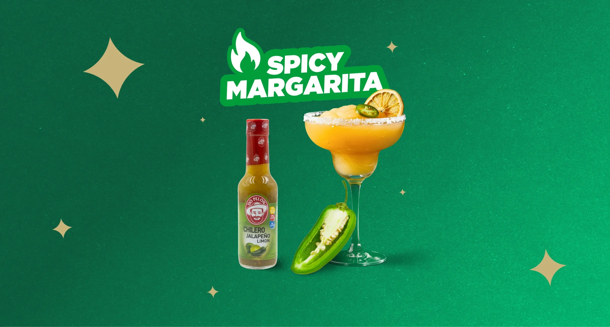 -Borde escarchado con sal, rodaja de jalapeño y rodaja de naranja deshidratada.